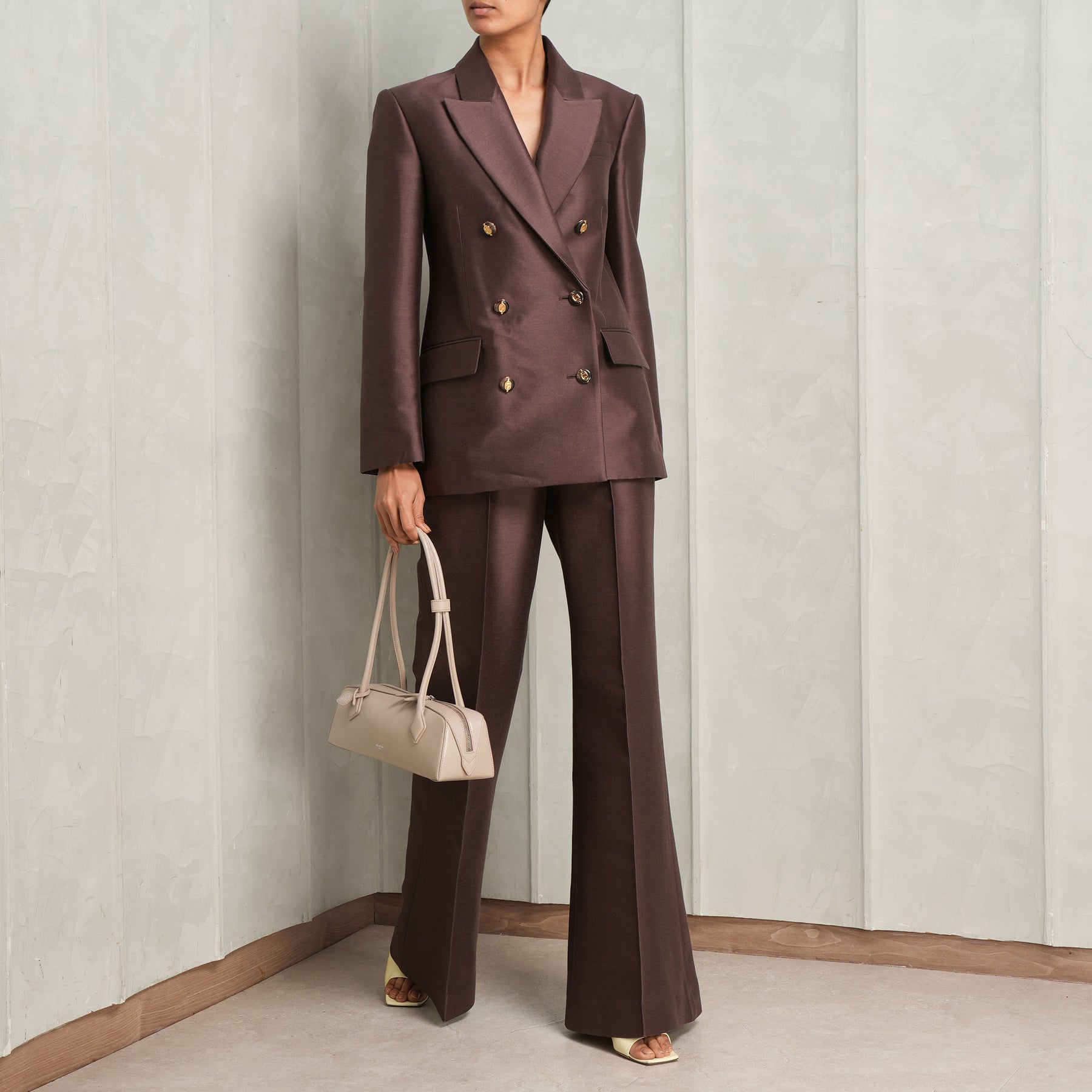 Introducing the Alchemy Wool Silk Flare Pant from Zimmermann - these flared trousers are designed to sit neatly at the waist and contour through the hips, before falling into a soft, elongated flare from the knee. The silhouette creates a lengthening effect while maintaining a clean, structured feel. Finished in a rich brown tone, they feel both classic and modern - easy to dress up or down. Polished yet effortless, they pair seamlessly with...