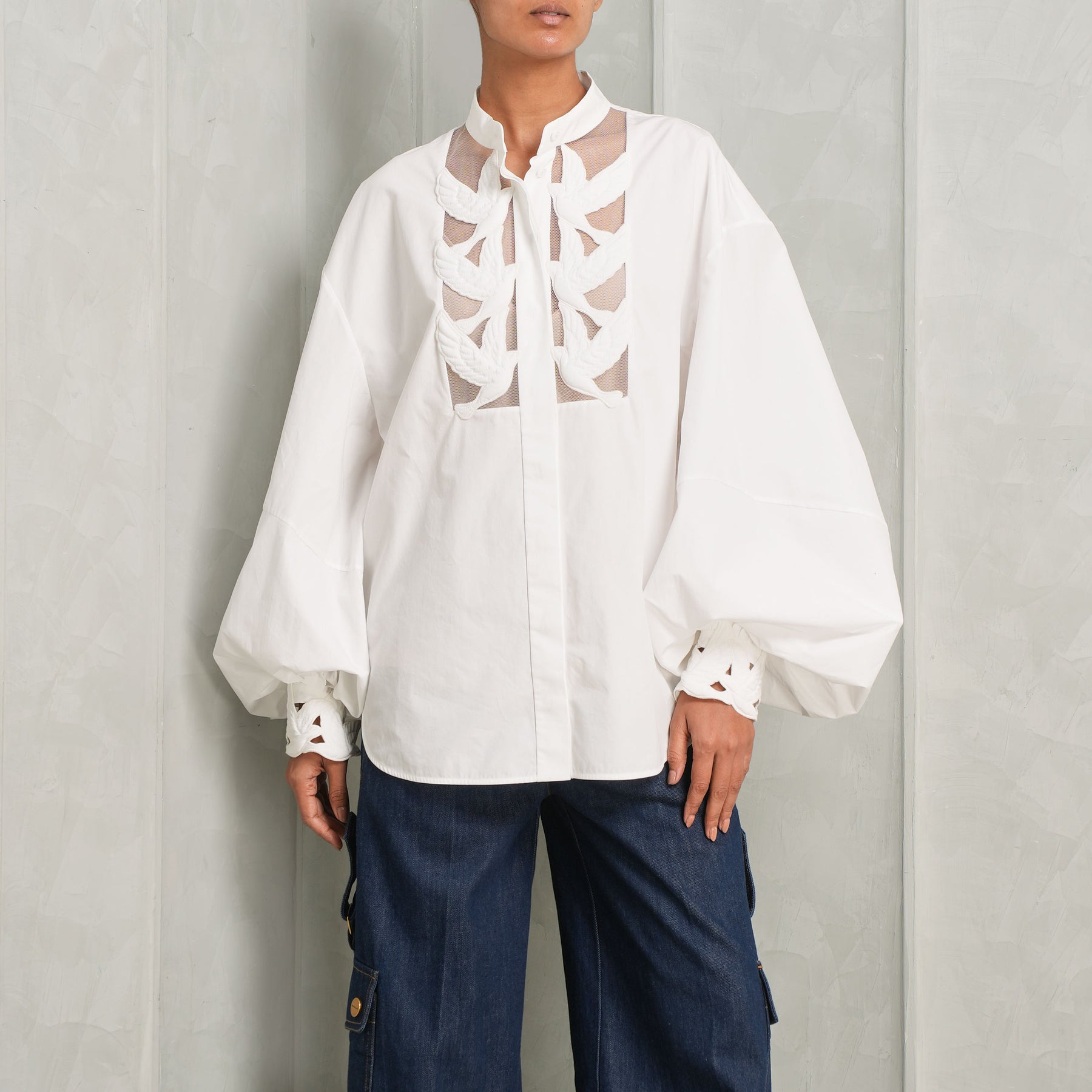 The Zimmermann Luna Applique Blouse is a cotton blouse featuring delicate appliqué detailing that adds subtle dimension to an otherwise clean silhouette. The ivory tone keeps it timeless and easy to pair, while the construction ensures it feels polished without being overly formal. For days that go from boardroom meetings to intimate gatherings, this blouse styles effortlessly with...
