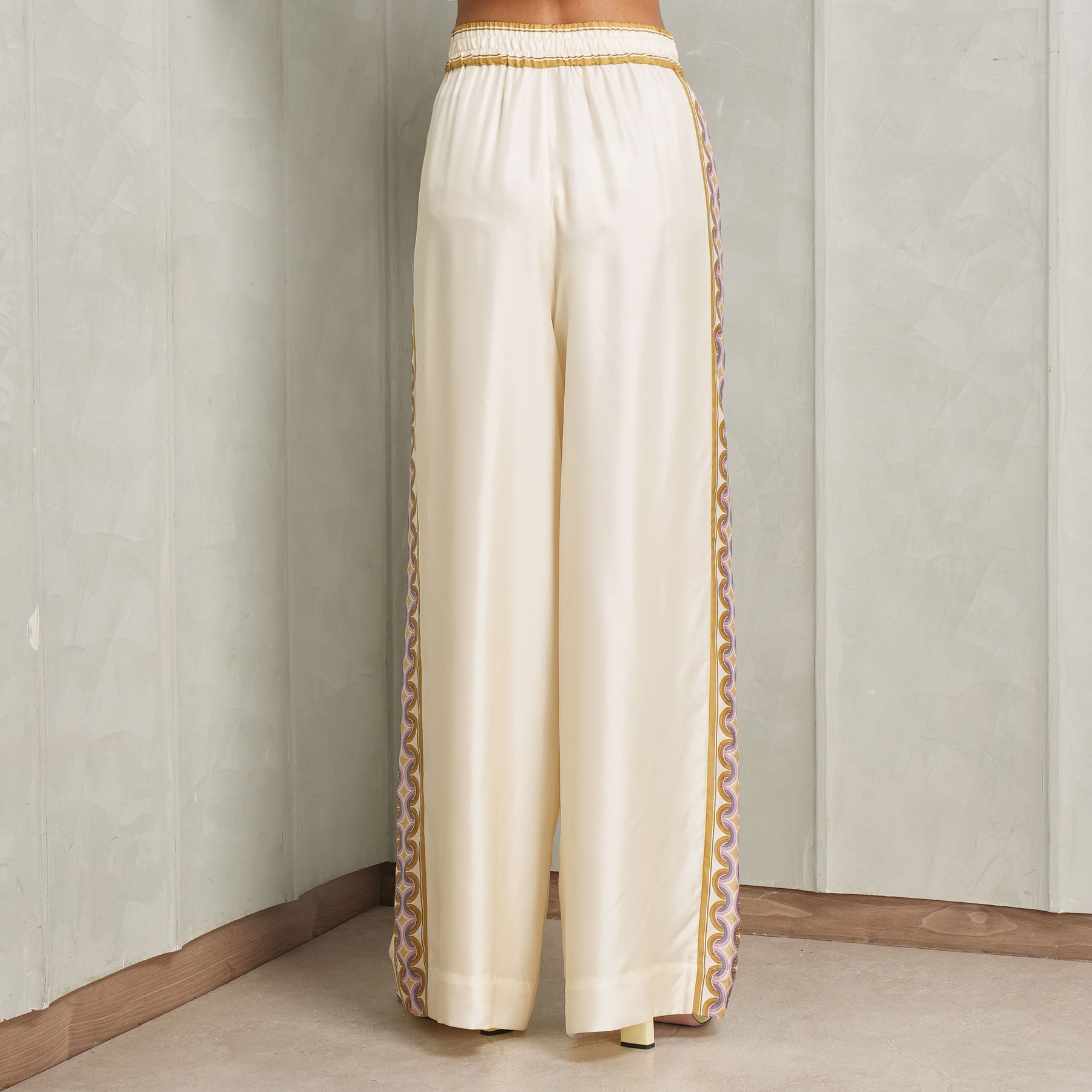The Luna Retro Track Pant from Zimmermann features relaxed track pants crafted in smooth silk, designed to elevate casual dressing through fabric and finish. The retro-inspired print adds personality, while the fluid silhouette ensures comfort. It’s an effortless piece that bridges loungewear and statement dressing. Style this versatile piece with...