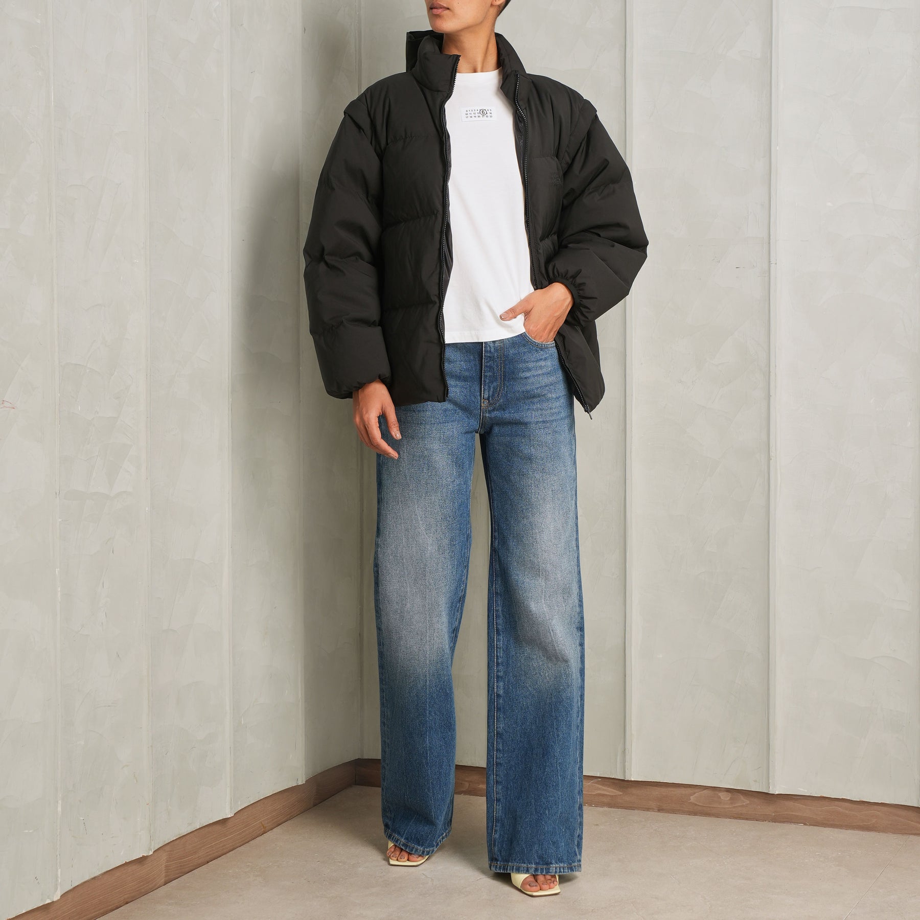 The Padded Sports Jacket from MM6 Maison Margiela is designed in black and features padded construction that offers both warmth and structure. The sporty silhouette is balanced with the brand’s contemporary design aesthetic - making it a perfect transitionary piece. For a day-to-night look, pair this jacket with Logo Patch T-shirt and Pantalon Pant from Rabanne.