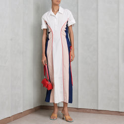 The Bustino Button Down Shirt by Rosie Assoulin is cut from a white hued pure cotton with nautical anchors printed all over. This hybrid dress features a tied-up button down layered over a relaxed fit slip dress. This Rosie Assoulin dress also features a front button closure, collared neck, midi length, rounded hem and cuffed long sleeves. For a summer day look, pair this Rosie Assoulin dress with Saint Laurent's Bianca Knotted Sandals.