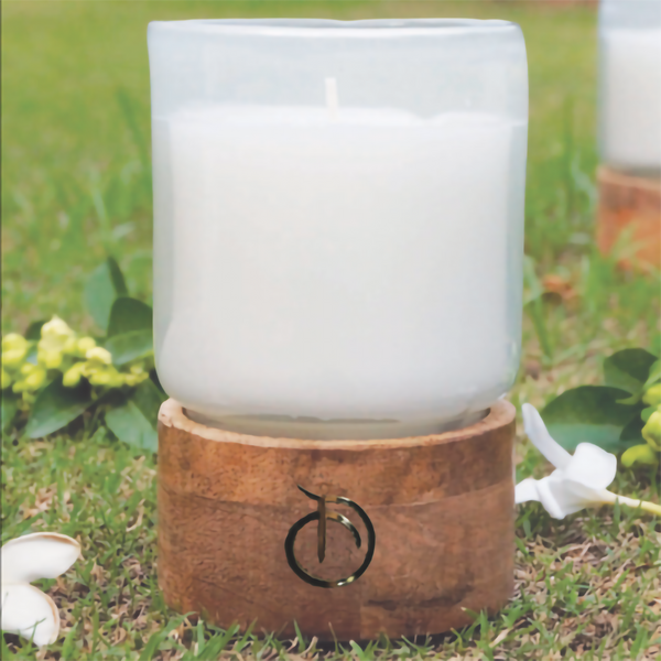 Housed in an artisan-blown melted mouth vessel and fitted in a natural mango wood base, this citronella candle illuminates your spaces while also keeping bugs at bay. Crafted from all-natural citronella oil derived from the leaves and stems of the lemongrass plant, this candle works to mask odors that attract insects, turning your oasis of calm into a pest-free escape.