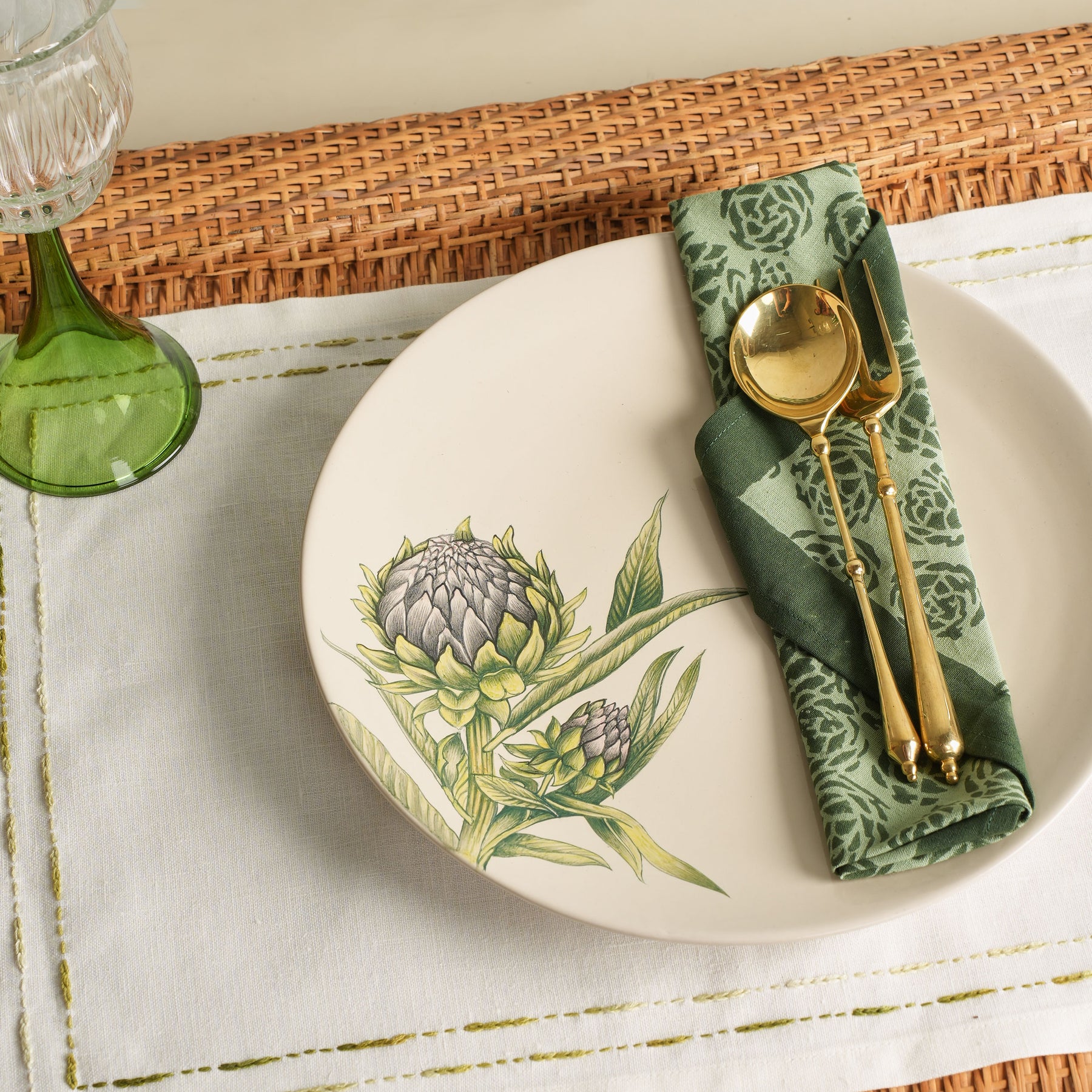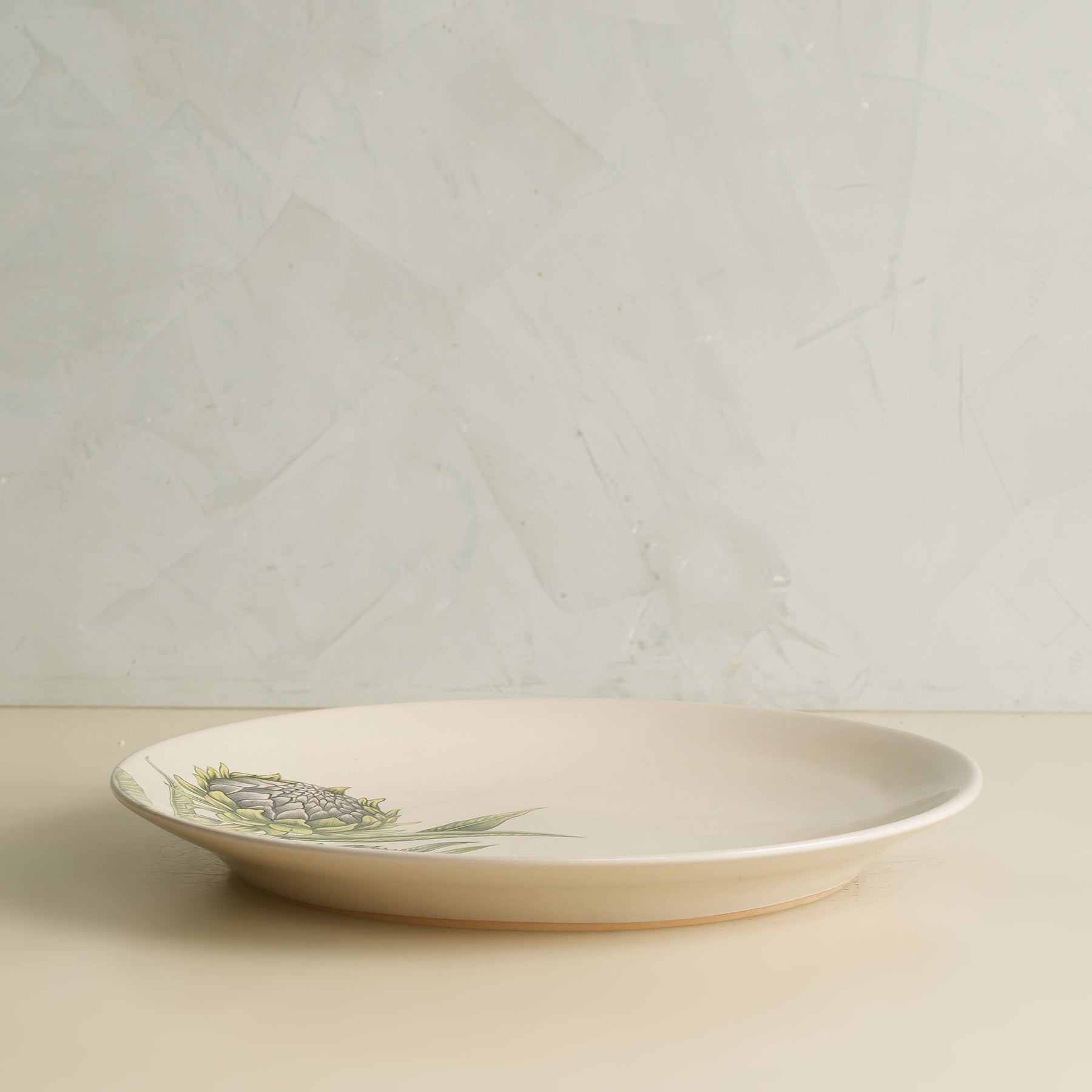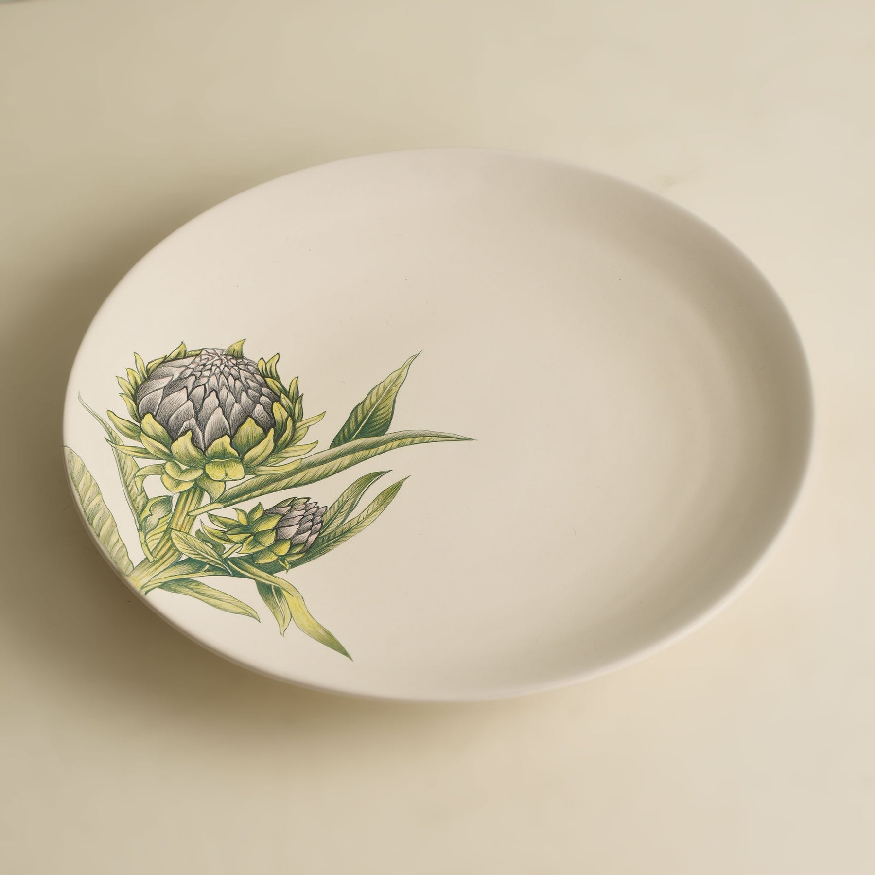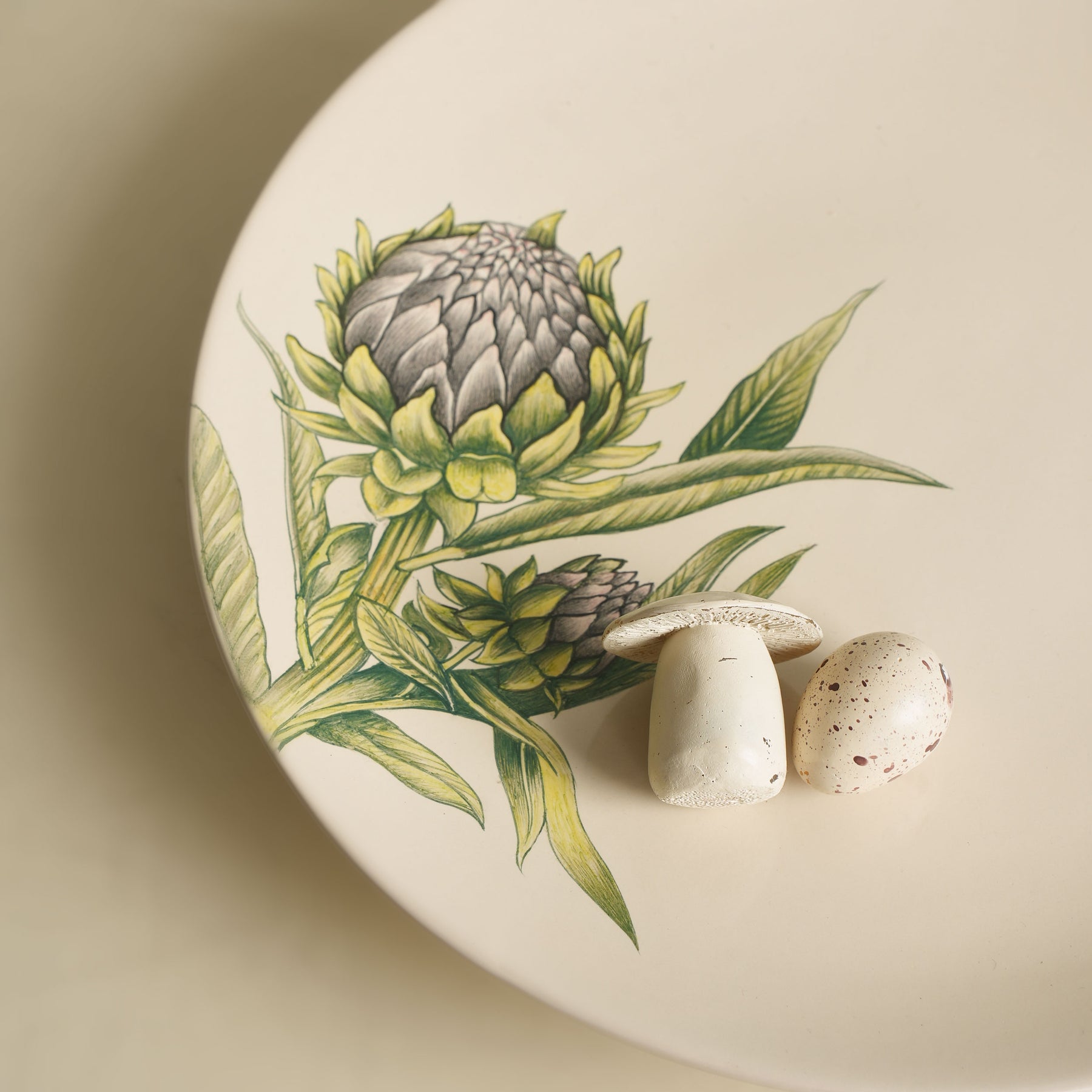 The Artichoke Dinner Plate from Khanoom celebrates the beauty of botanical form. Crafted with intricate detailing and natural tonal depth, it mirrors the symmetry of an artichoke petal by petal. Versatile and timeless, it pairs seamlessly with neutral or earthy tablescapes - a true reflection of understated design.
