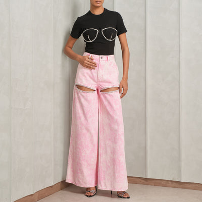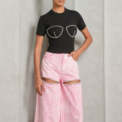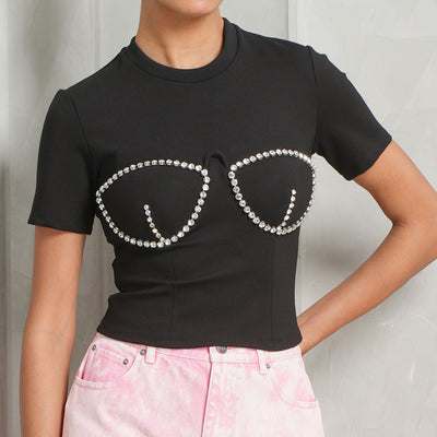 The Crystal Bustier Cup T-Shirt from Area is the perfect night-out ensemble. This top features a crystal trim cup paired with an underwire and hidden side zip. This piece boasts a form fitting silhouette. For a bold look, pair this with Area's Crystal Slit Jean.