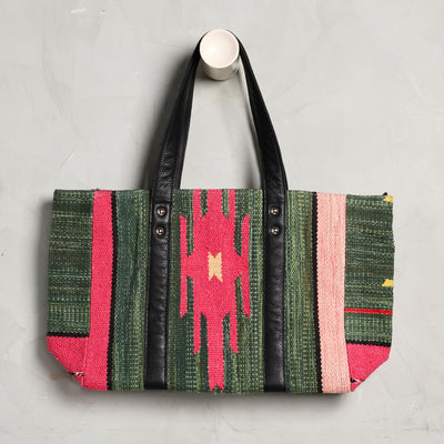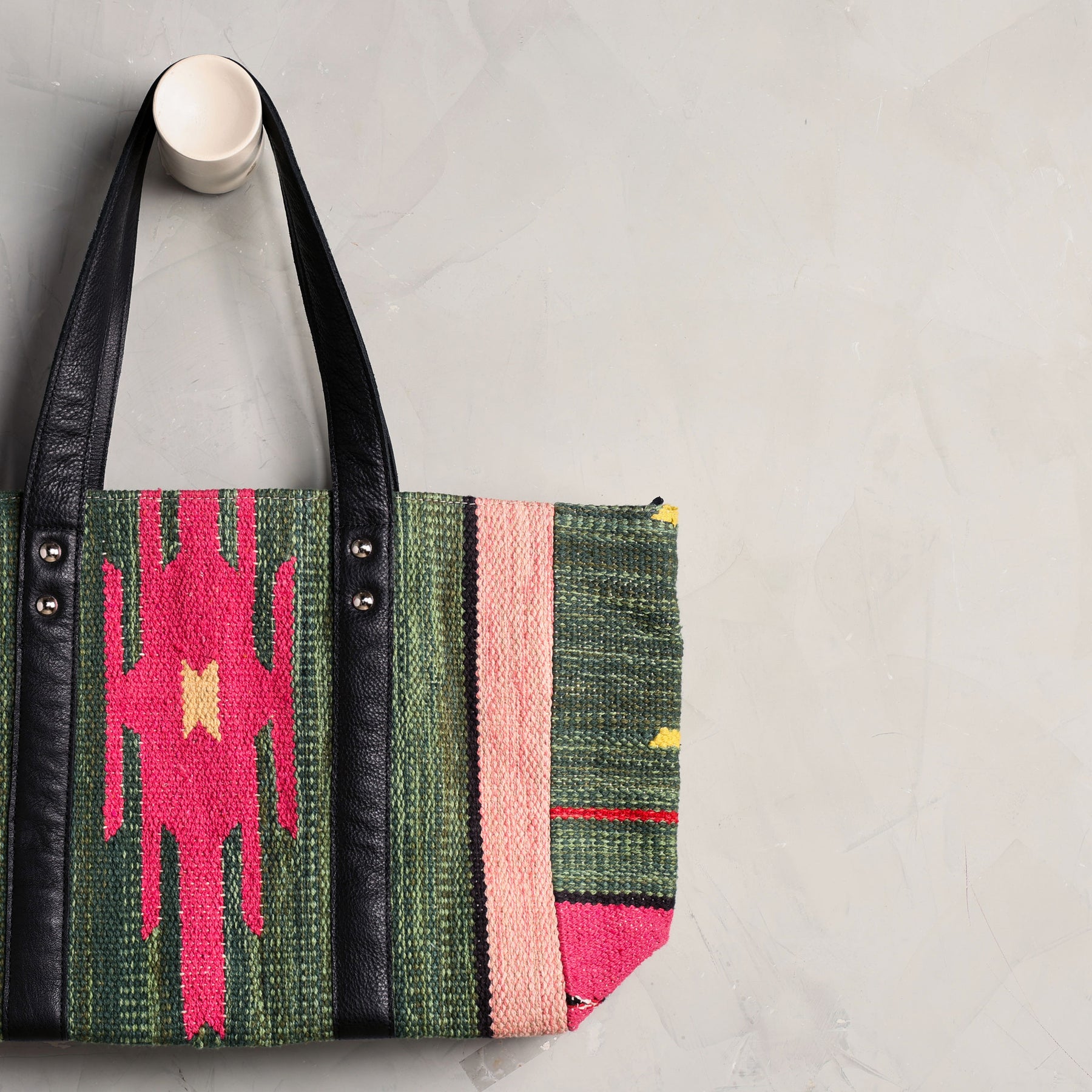 Crafted from hand-woven Indian cotton dhurries sourced across India, the Dhurri Small Tote from Joli is a one-of-a-kind statement piece. Spacious enough to carry your essentials, this tote is designed for both substance and function. This piece features a full zip closure and two interior...