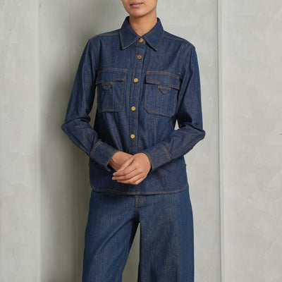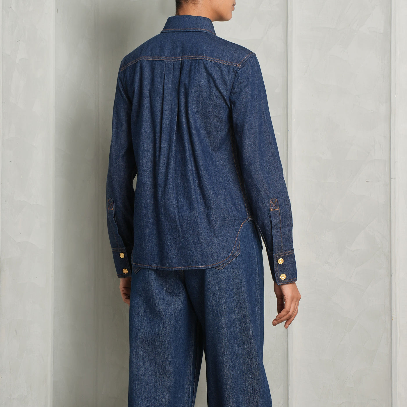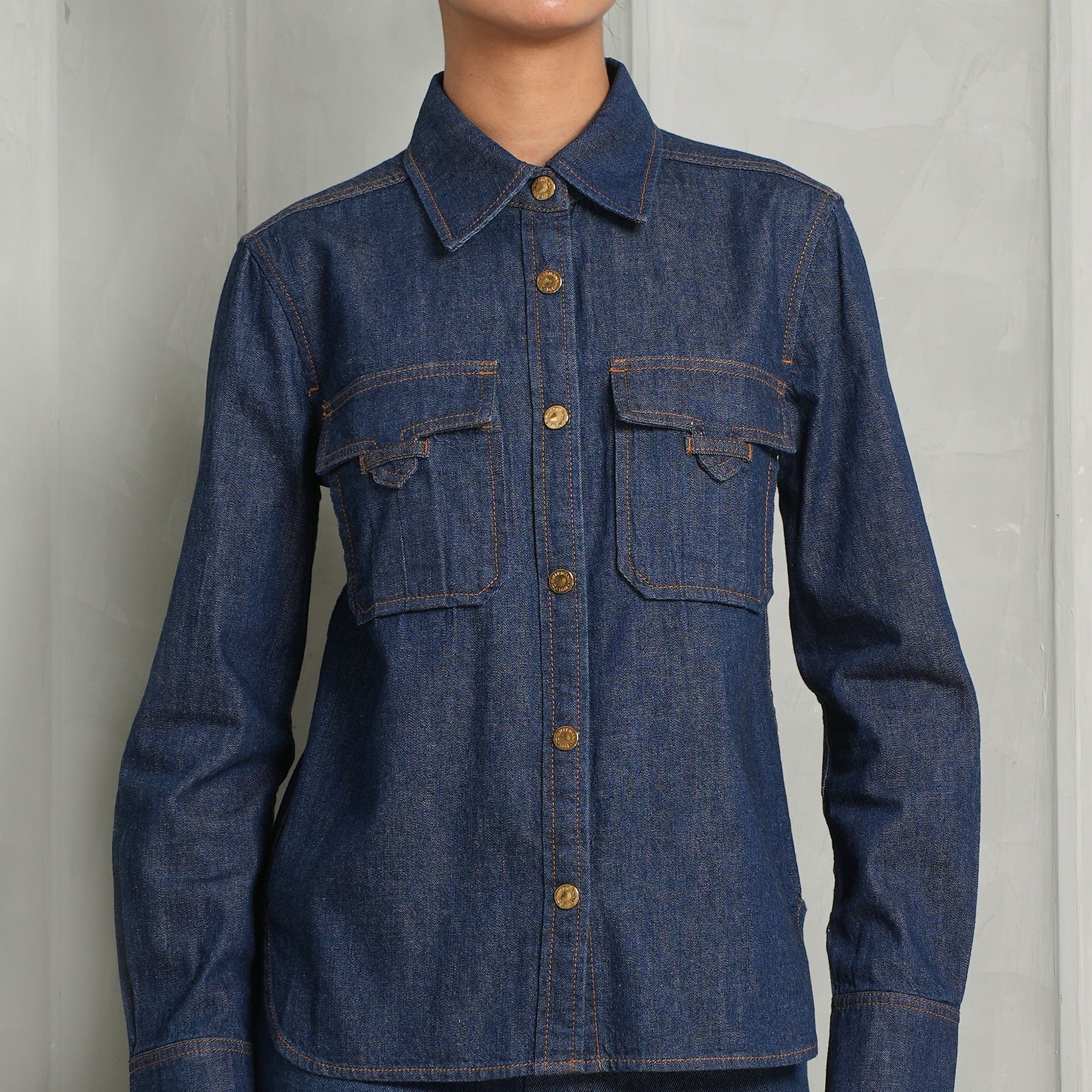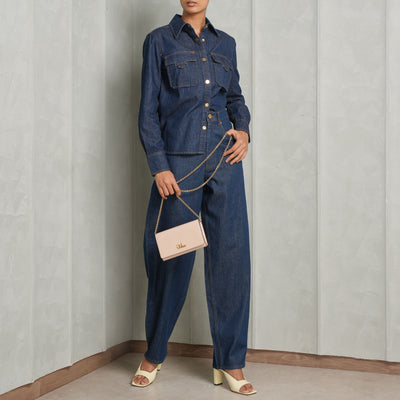 Meet the Fitted Denim Shirt from Zimmermann - a classic redefinition of wardrobe staples. This long sleeve cotton shirt boasts a classic collar with chest pockets. This shirt has a fixed cuff and a button closure, making it functional and practical. For an effortless look, pair this shirt with the Barrel Jean from Zimmermann and the Chloé Iconic Flap Wallet on Chain.