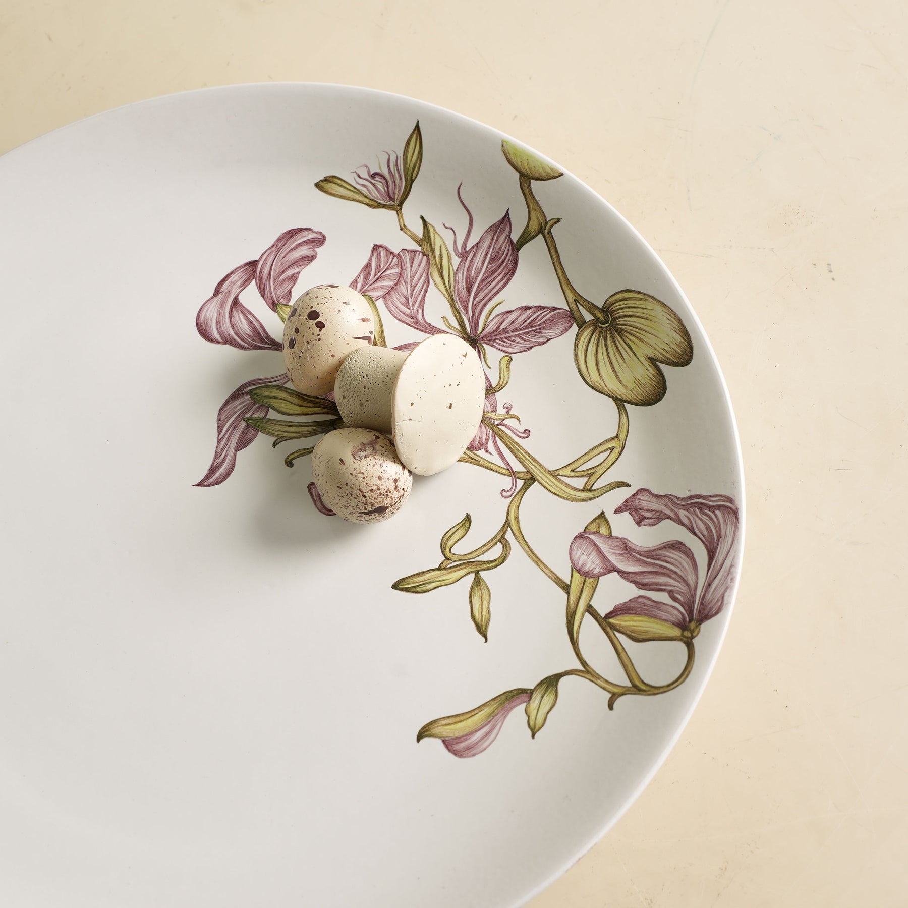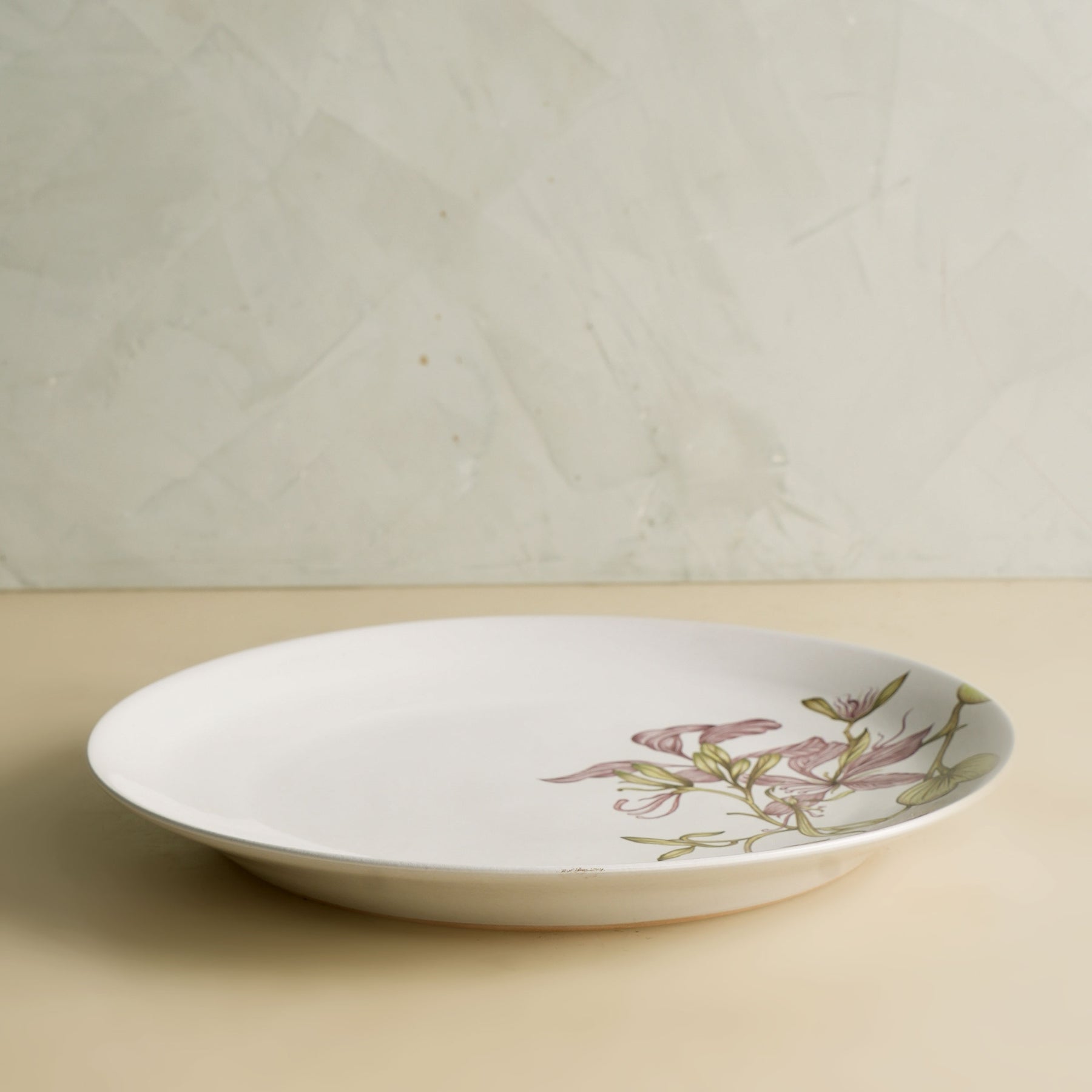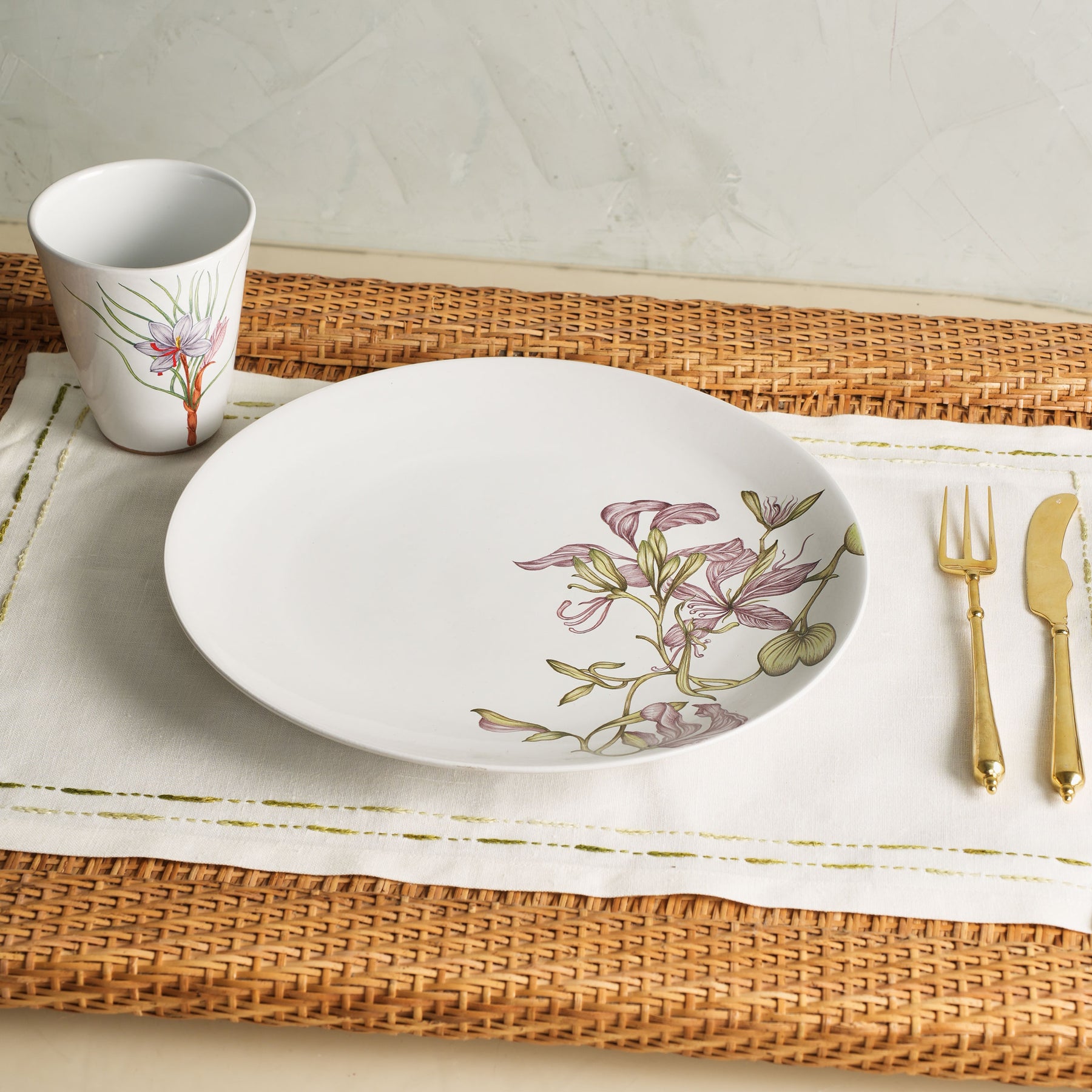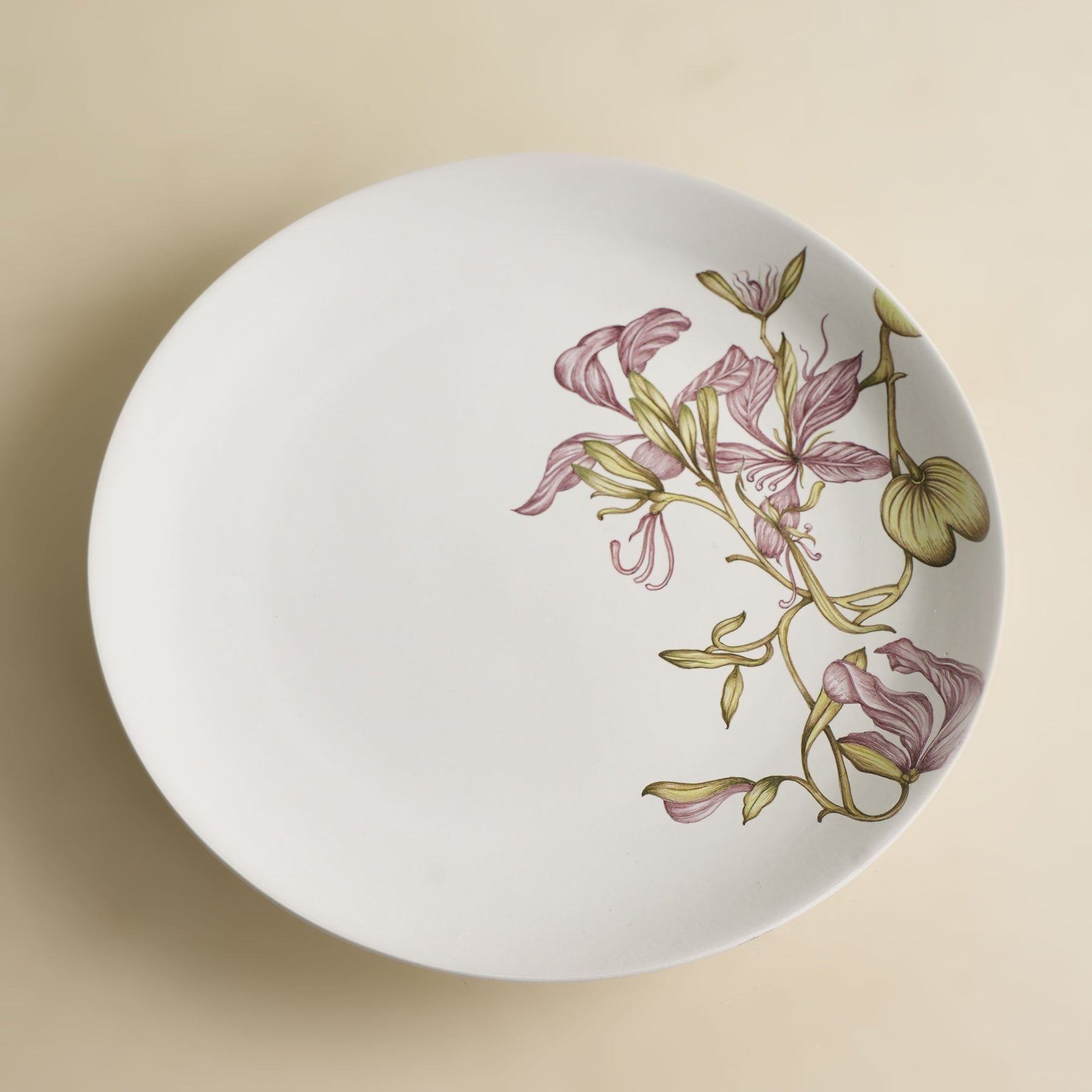 Inspired by the delicate petals of the Kachnaar flower, this Khanoom Kachnaar Purple Bloom Dinner Plate is adorned with soft purple blooms that add quiet vibrance to your table. The hand-painted pattern brings together traditional craft and contemporary form, creating a piece that’s as expressive as it is functional.