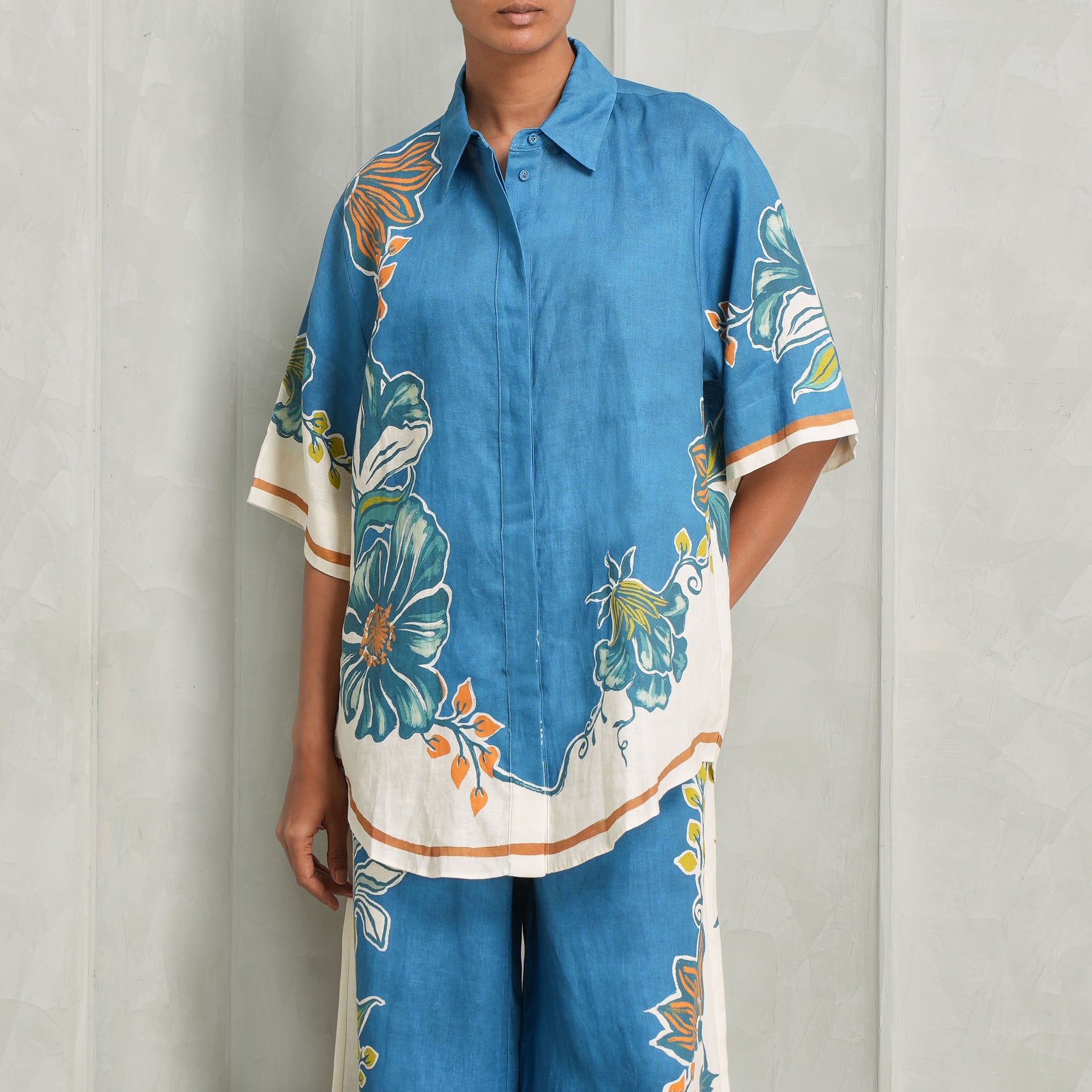 The Luda Shirt from Alemais features a relaxed silhouette with a pointed collar and stand. Designed with a concealed placket and self-covered buttons, the piece offers a clean, refined take on everyday dressing. Style it with…