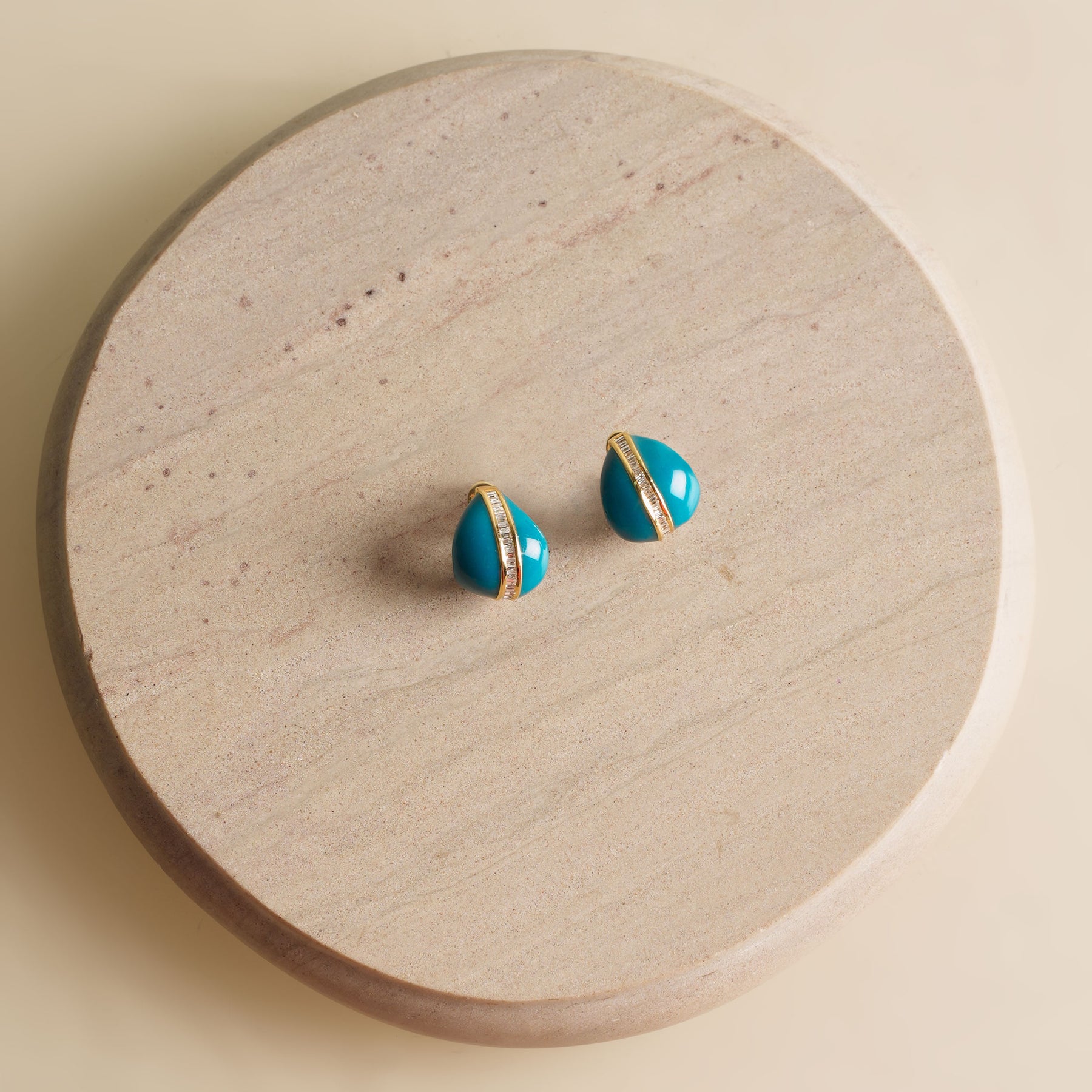 Cool and carefree - these Blue Summer Sorbet Earrings from Sapna Mehta feature natural diamonds with a blue enamel. These earrings feature the essence of summer skies and sea-kissed days.