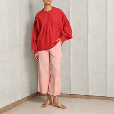Meet the Ren Pant from Tokree - tailored in soft cotton modal. These pants offer a fluid drape and relaxed silhouette, perfect for long summer days. The subtle embroidery adds a touch of craftsmanship, elevating its minimal silhouette. Designed for comfort with a refined finish, these pants pair effortless with both everyday staples and occasion wear. Complete your look with the Ren Pants from Tokree.