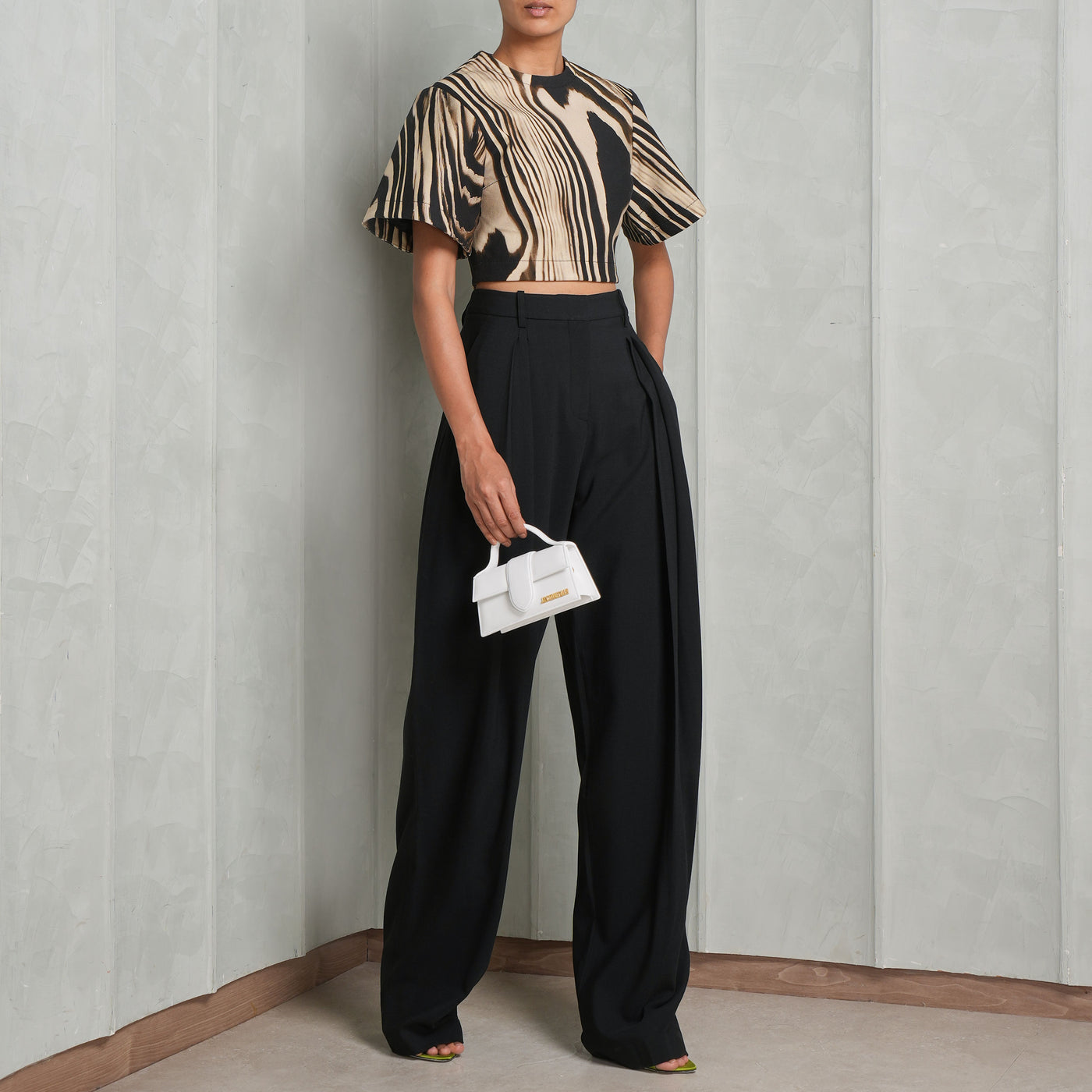 Understated. Precise. Timeless. The Tapered Tailored Trousers from David Koma are cut to flatter with a high-rise waist and a gently tapered leg that skims the ankle. These pants move with intention while holding their shape. Finished with sharp pleats and minimal detailing, these pants are an essential foundation for both day and night. Pair this versatile pair with Zebra Print Crop Top from David Koma and Jacquemus’ Bambino Bag.